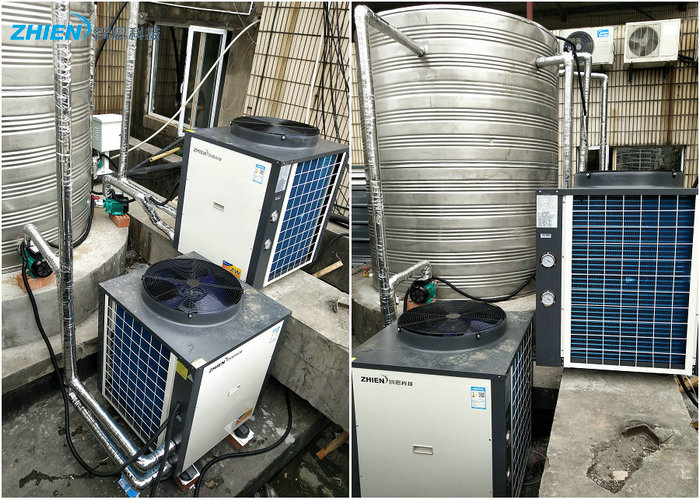 绍兴酒店客房热水项目采用了午夜精品在线视频观看午夜性爱福利2台5匹机器( ZN-KFDX-050ll),5吨圆形不锈钢保温水箱。